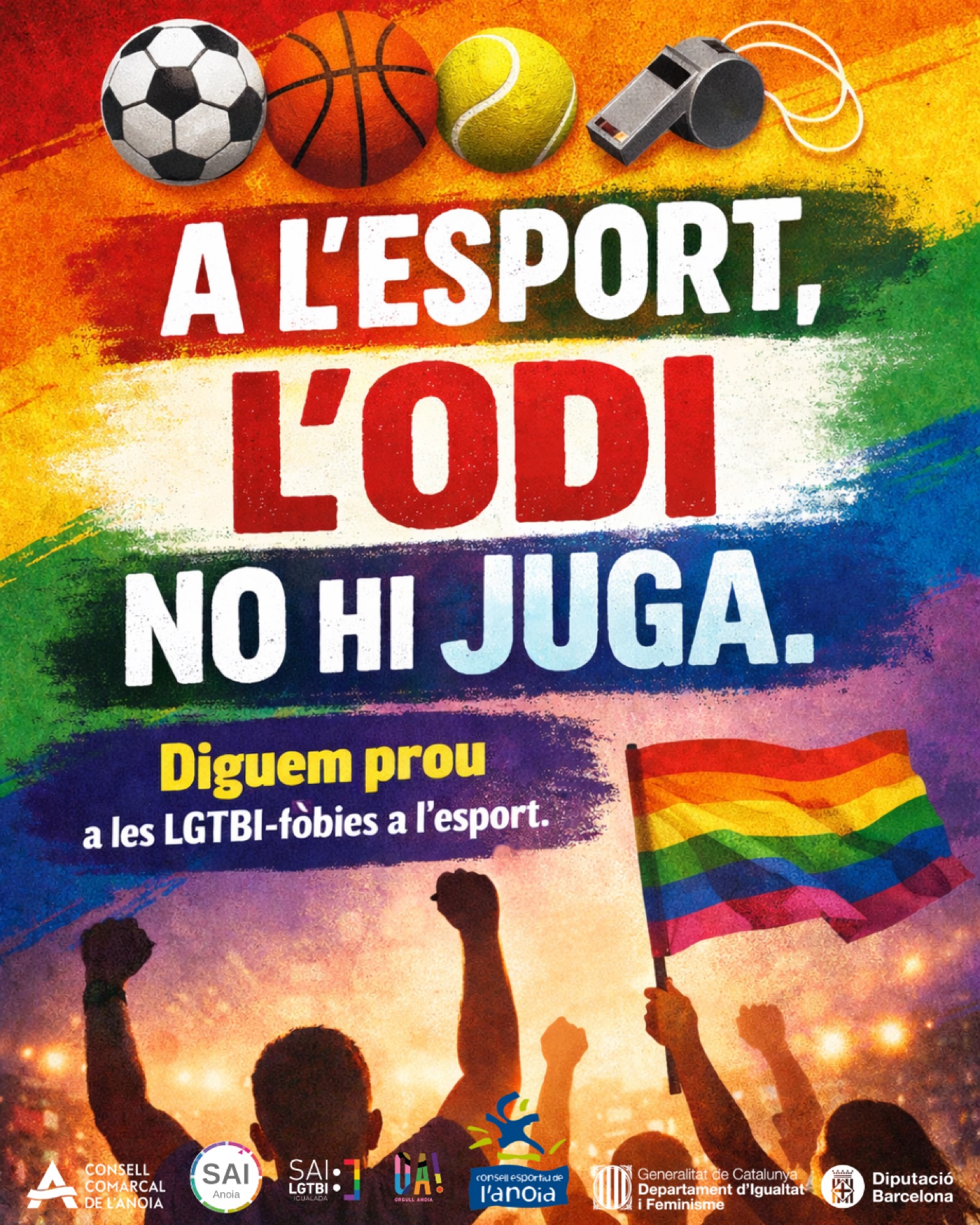 Amb el lema “A l’esport, l’odi no hi juga. Diguem prou a les LGTBI-fòbies a l’esport”, el SAI Anoia, el SAI Igualada, el Consell Esportiu de l’Anoia i l’entitat Orgull Anoia s’uneixen per reivindicar aquesta jornada a tota la comarca de l’Anoia i per alçar la veu contra qualsevol forma de discriminació dins i fora dels espais esportius.
