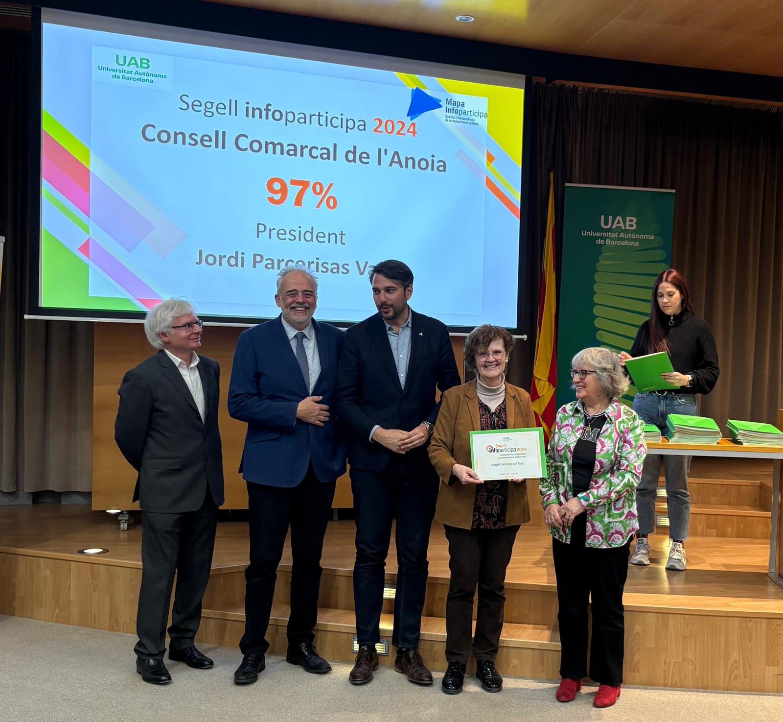 Per segon any consecutiu, el Consell Comarcal de l'Anoia ha aconseguit el Segell Infoparticipa amb una puntuació del 97,96% en matèria de transparència....