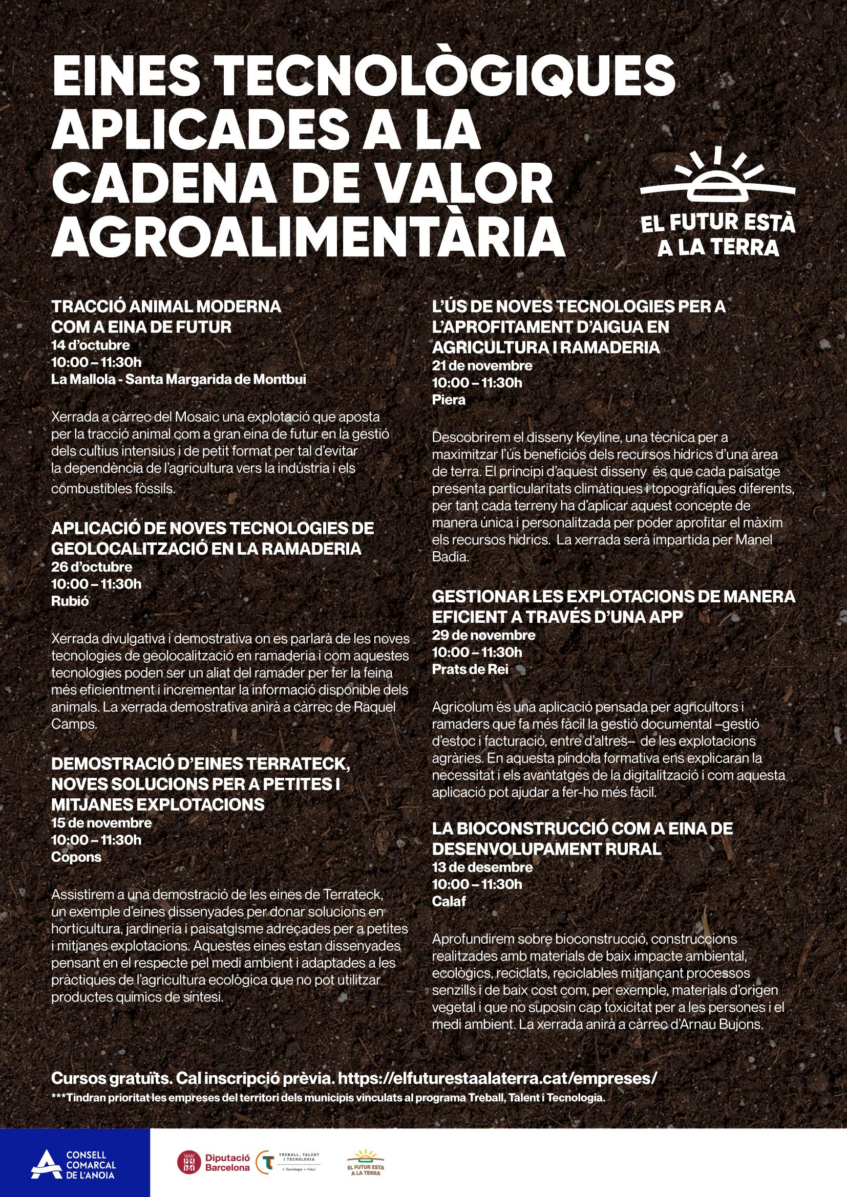 El programa ‘Treball, Talent i Tecnologia’ del Consell Comarcal de l’Anoia proposa 6 formacions sobre eines tecnològiques al sector agroalimentari