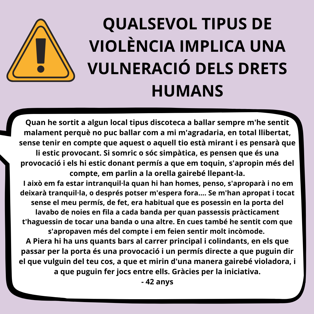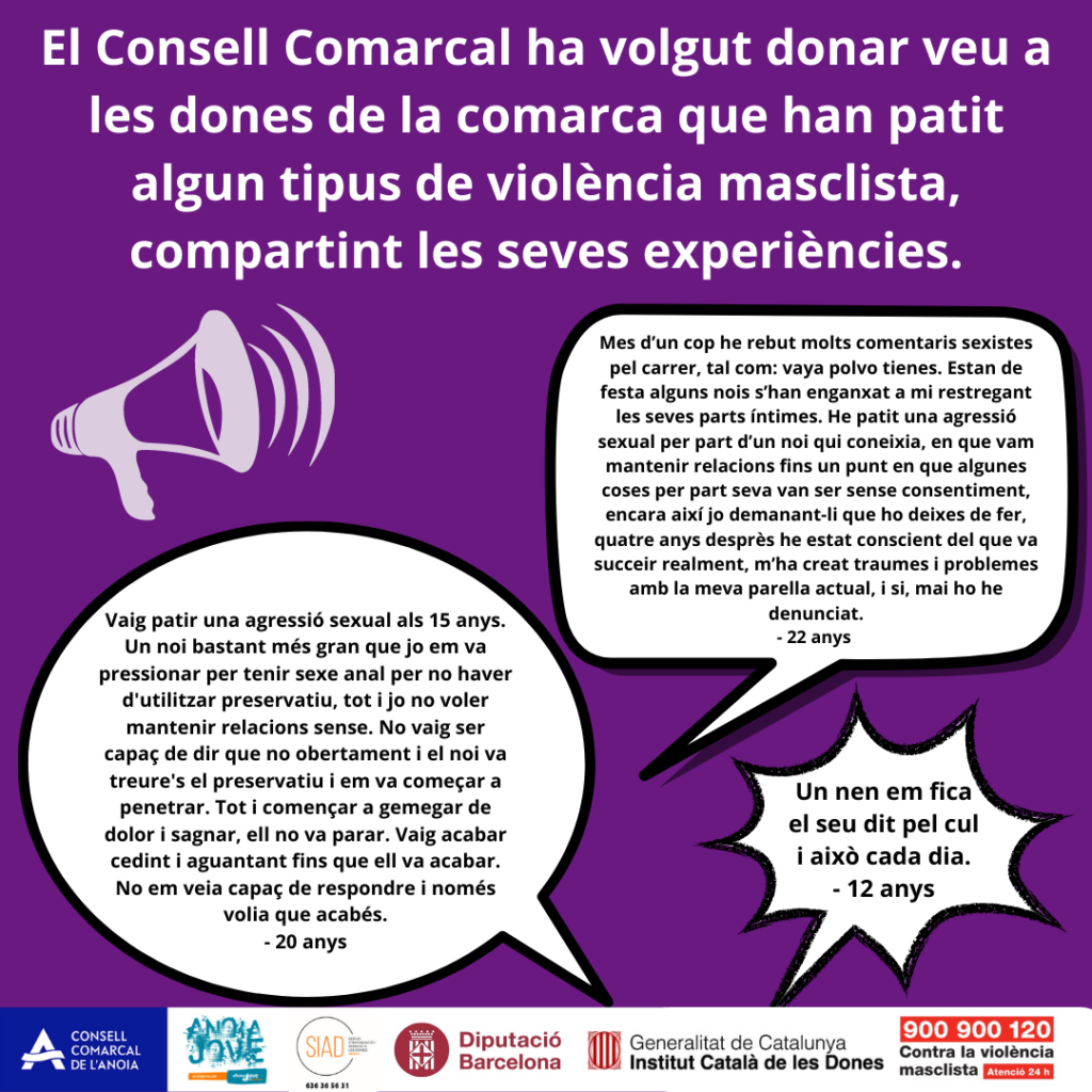 Aquest any, pel 25N, Dia Internacional per a l’Eliminació de la Violència Envers les Dones, el Consell Comarcal de l’Anoia ha recollit testimonis de dones que han patit algun tipus de violència masclista.