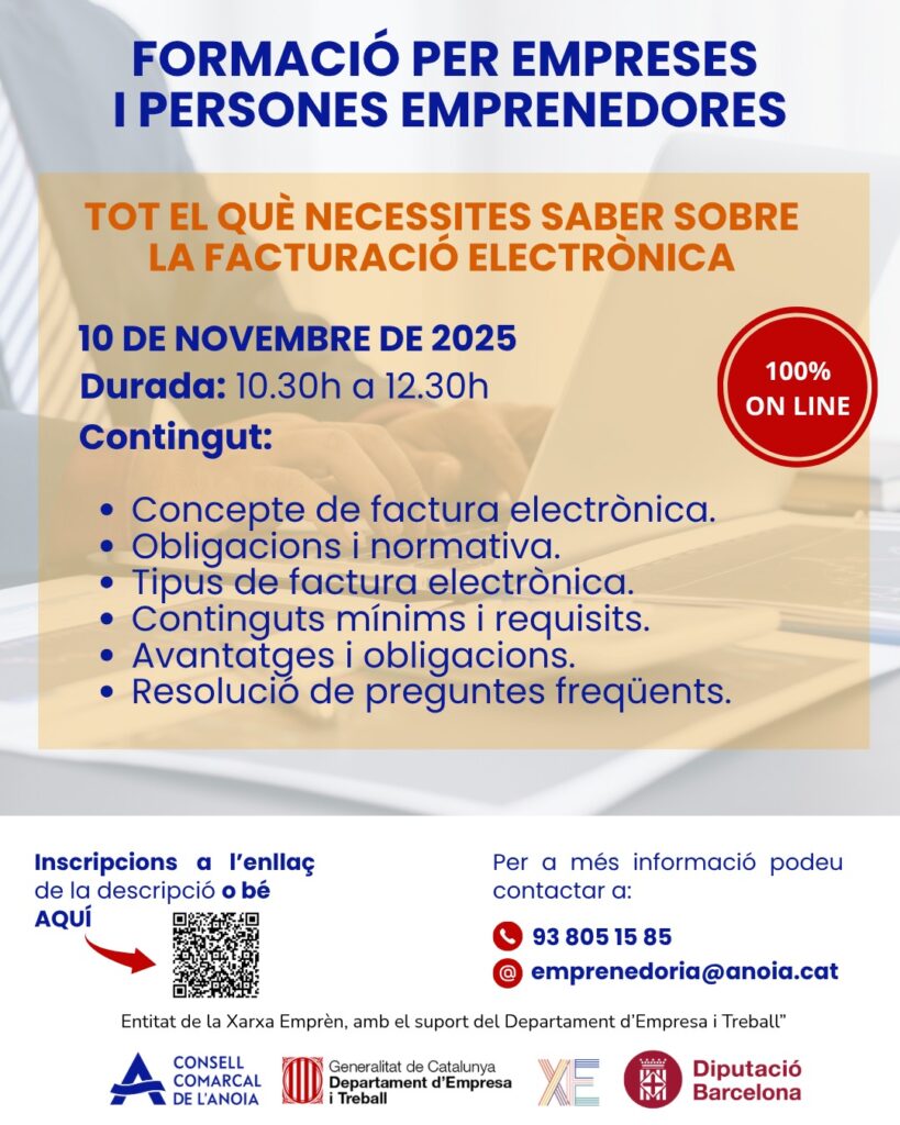 El Consell Comarcal de l'Anoia anima totes les empreses i persones emprenedores de la comarca a aprofitar aquesta oportunitat de formació especialitzada i de qualitat, oferida en el marc de la Xarxa Emprèn.