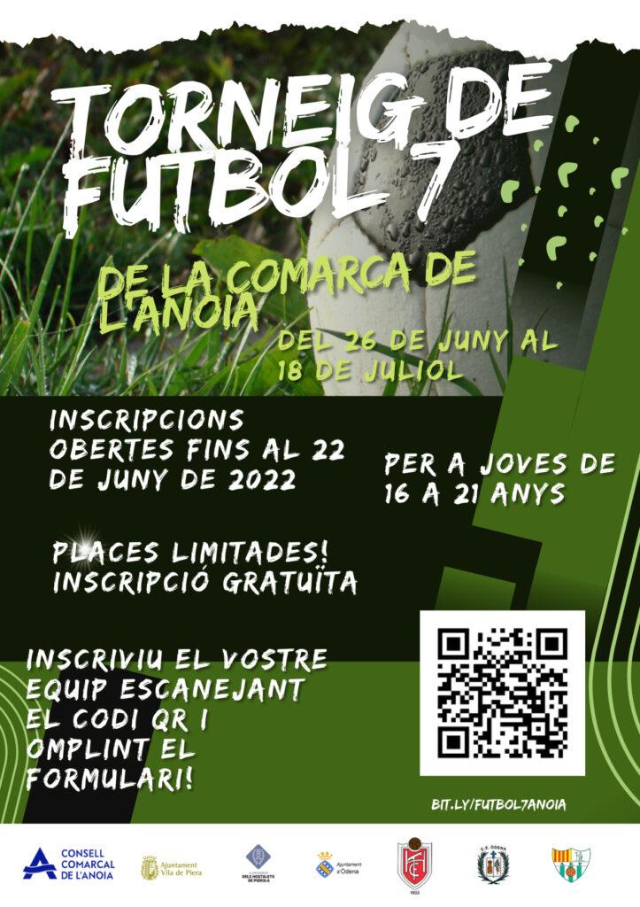 El Consell Comarcal de l’Anoia, conjuntament amb els ajuntaments d’Òdena, Piera i Els Hostalets de Pierola, organitza aquest estiu un torneig de Futbol 7 obert a tot el jovent de la comarca. Tindrà lloc del 26 de juny al 18 de juliol.