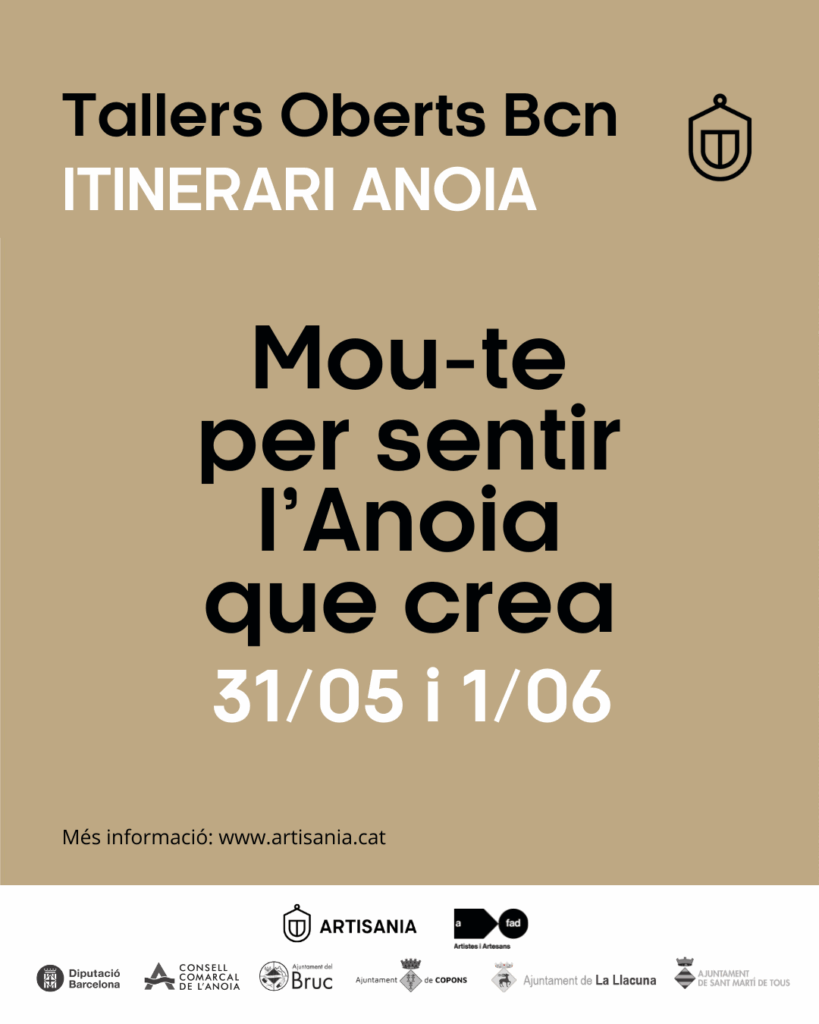 Els Tallers Oberts Bcn, organitzats per l’Associació d’Artistes i Artesans del FAD (A-FAD), arriben aquest any a la comarca de l’Anoia gràcies a la col·laboració amb ARTISANIA. Aquesta aliança permet que, per primera vegada, artesans de l’Anoia participin conjuntament amb els seus col·legues de Barcelona i L'Hospitalet de Llobregat en aquestes jornades de portes obertes, oferint al públic una oportunitat única per conèixer de prop la seva feina i endinsar-se en el món de l’artesania local.