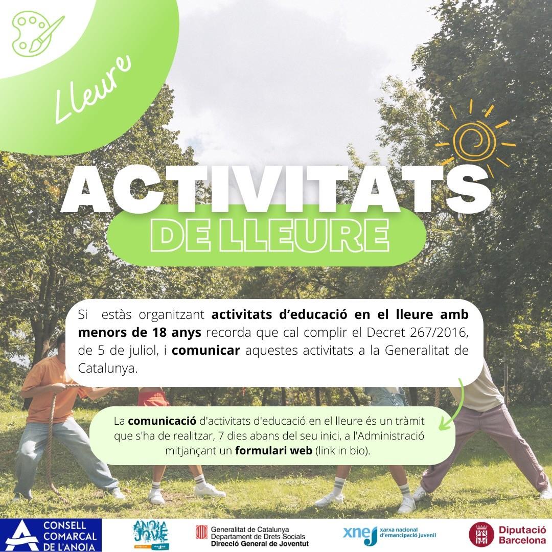 El Consell Comarcal recorda a les entitats que organitzen activitats d’educació en el lleure amb menors de 18 anys que han de notificar-les a la Generalitat