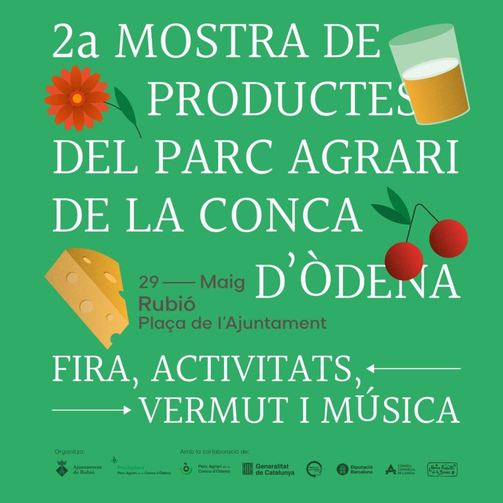 L’Associació de Productors de la Conca d’Òdena organitza el proper diumenge, 29 de maig, a la Plaça de l’Ajuntament de Rubió, la 2a Mostra de Productes del Parc Agrari de la Conca d’Òdena. La primera edició, celebrada l’any passat a Santa Margarida de Montbui, va tenir una excel·lent acollida.
