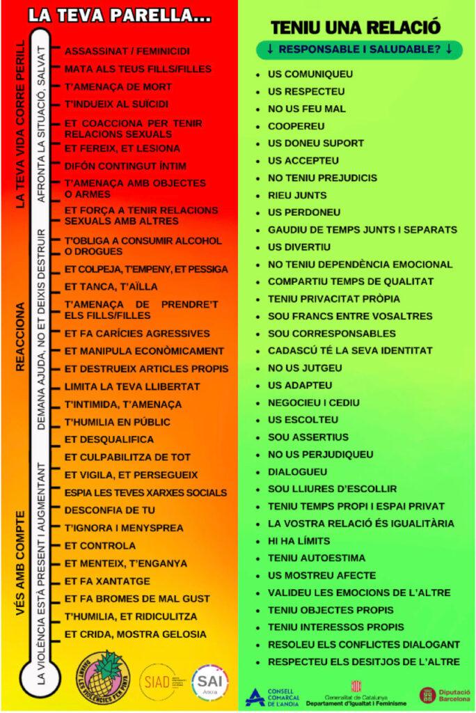 Des de la Unitat d’Igualtat i Famílies del Departament de Benestar Social i Atenció a la Ciutadania del Consell Comarcal de l’Anoia s’han elaborat una sèrie de materials per ajudar a conscienciar i visibilitzar la problemàtica social entorn la violència masclista.